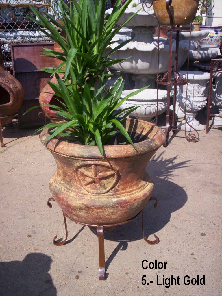 UPC: 89876700117-6 Item Number: 547 Size: 22” Diam. x 24” H Weight: 0 lbs 0 oz Colors: Chocolate , Old Gold , Rustic Brown , Rustic Green , Rustic Red , Terracotta